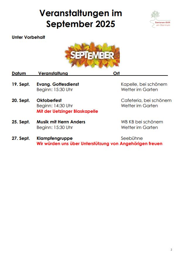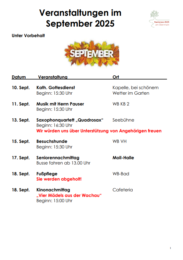 Der Posaunenchor bringt ein Ständchen zu Geburtstagen der Bewohner, die Seniorenvereinigung des Landkreises Lichtenfels organisiert in unseren Räumlichkeiten Spiele- und Filmnachmittage, die kath. und evang. Kirchengemeinde zelebriert mit den Bewohnern gemeinsam in regelmäßigen Abständen den Gottesdienst….